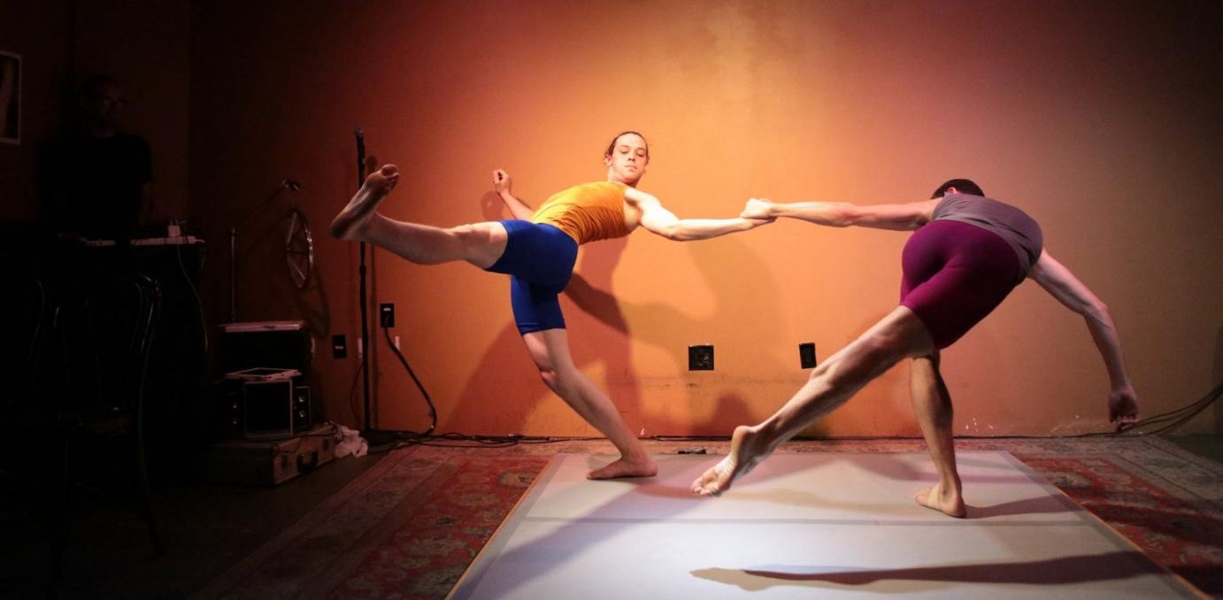 This version of Small Stages is performed on and around a 6’ X 6’ stage, and follows the development of relationships in small stages – attraction and courtship, a solitary figure relating to an empty chair, the negotiation and tussles built into a long-term relationship, action among friends. Sporting a robust movement vocabulary from everyday movements and facial expressions to rigorous dance sequences, this piece pulls the viewer’s attention into the details of the dancers’ emotions and interactions, similar to the way a camera zooms into a close-up, revealing the interior world of the individual characters. With humor, exuberance, conflict, passion and tenderness, this half hour dance creates a large canvas on a small stage.
