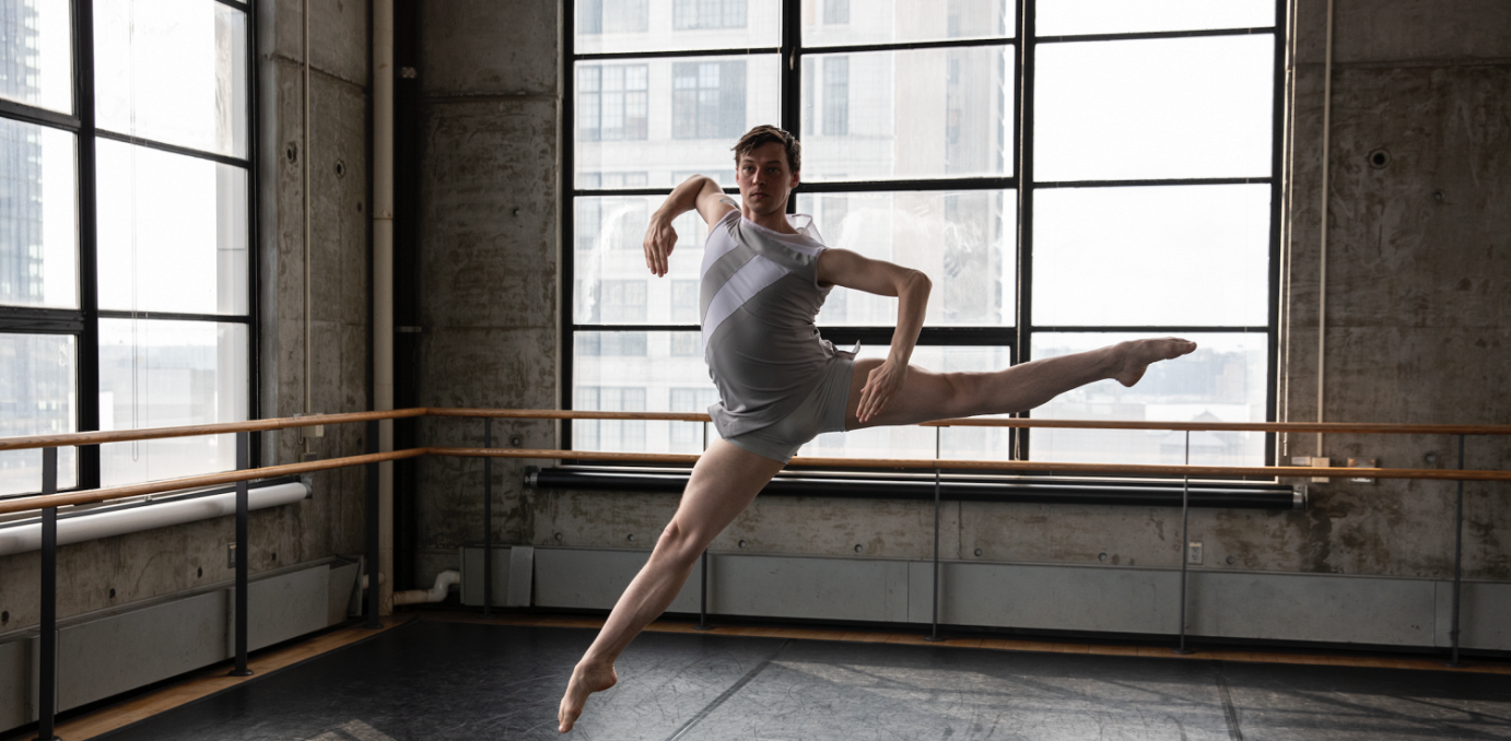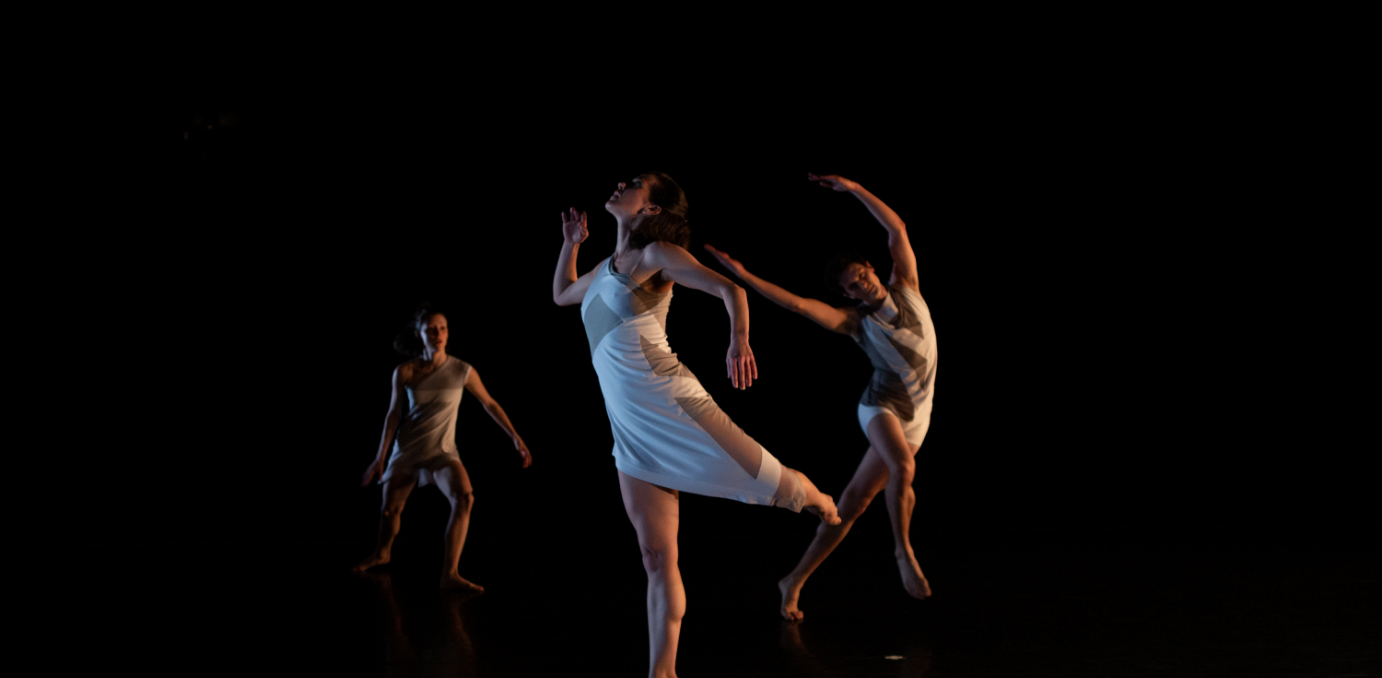 The costumes for this work are by Karen Young, inspired by the Spanish architect Antoni Gaudi’s famous cathedral located in Barcelona, drawing upon the images of the serene white columns and architecture on the inside of the building. The music, composed by Cornfield’s longtime collaborator Andreas Brade, is performed by three musicians on drums, piano, and saxophone.